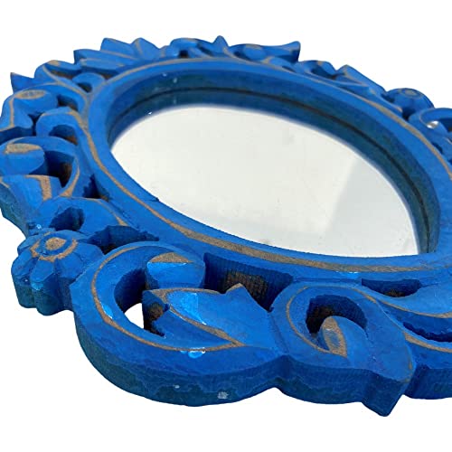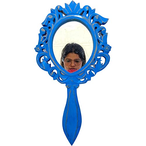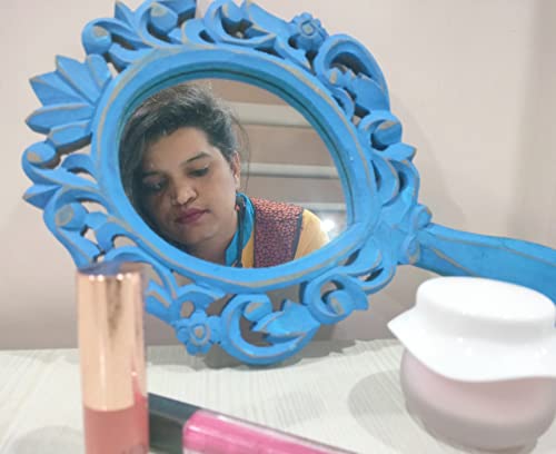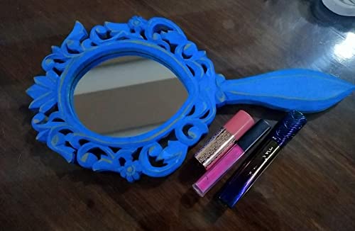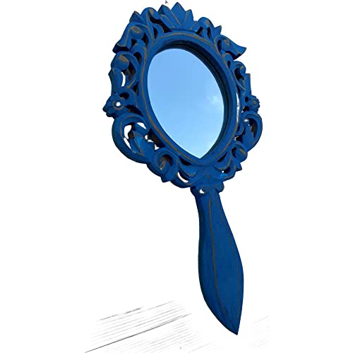 - Portable to Carry: our embossed floral design mirrors measure about 15 inches long and 8 inches wide, proper size and light weight for you to carry around in your hand bag or suitcase,made of MDF wood, rustic blue in color and 400 gram in weight.
