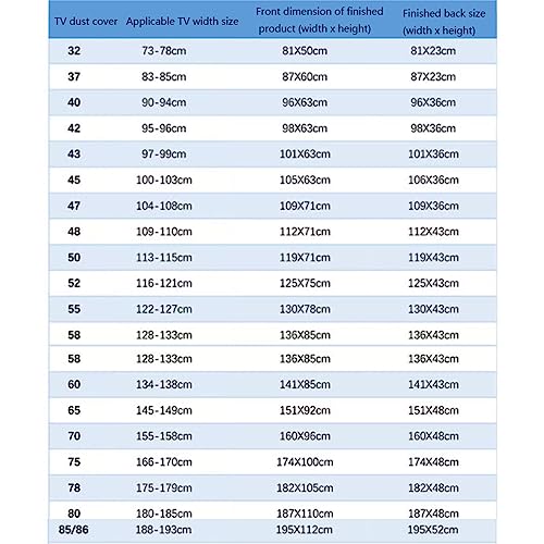 - ✔ UNIVERSAL COMPATIBILITY: The TV cover is suitable for 32-86 inches LCD flat/curved TV, which perfectly protects your TV screen. You can use it to cover your desktop, wall-mounted and curved screen televisions. Please check your TV measurement to ensure compatibility!
