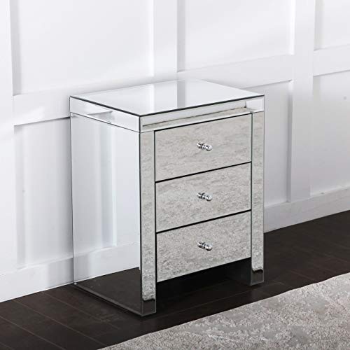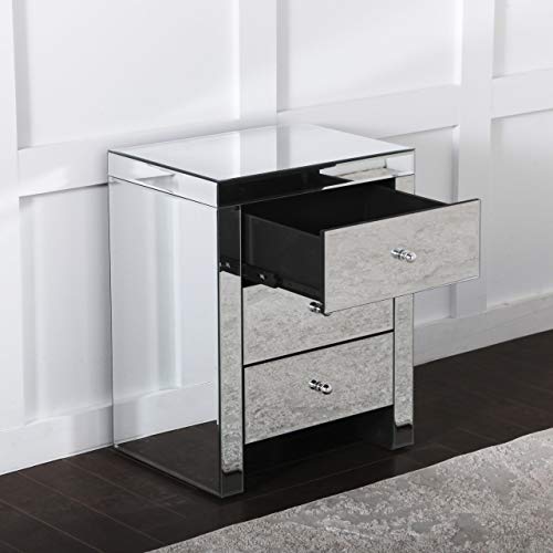 Home Bedroom Furniture Comfortzone Home Furnishers Mirrored Venetian Ornate 3 Drawer Bedside Table, 46 x 35 x 54cm