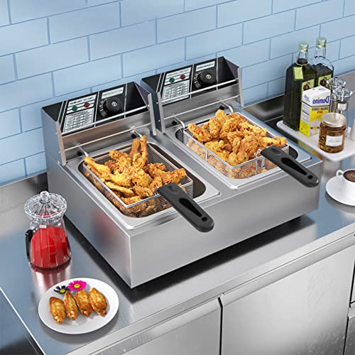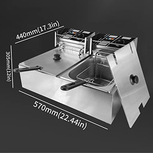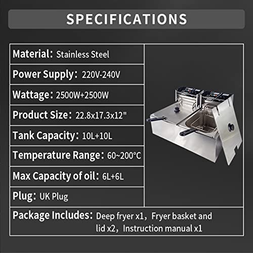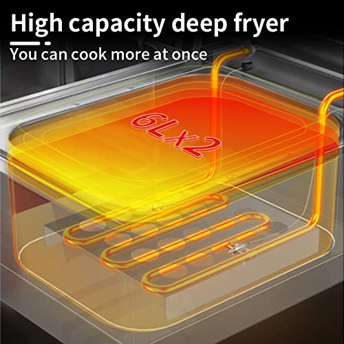 - 【Large Capacity】10L + 10L capacity ,electric fryer with 2500W + 2500W maximum power.