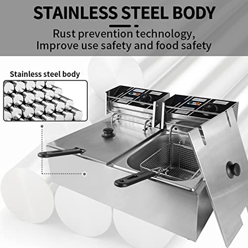 - 【Package Includes】Double tank Comes with fryer basket and lid,CE Certification.
