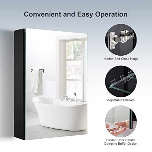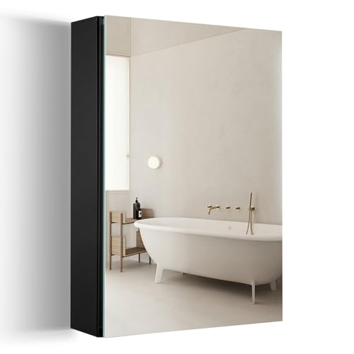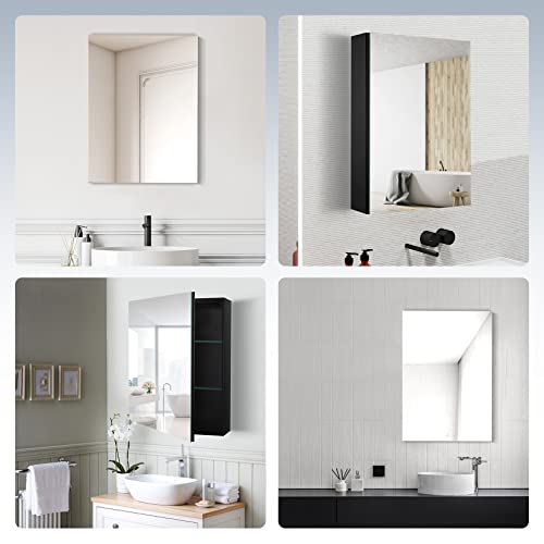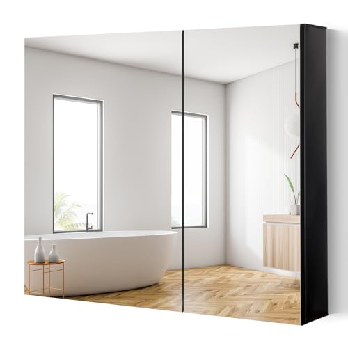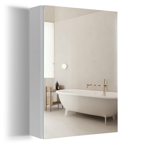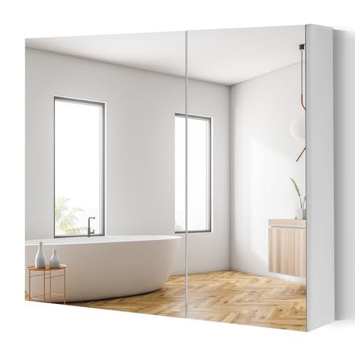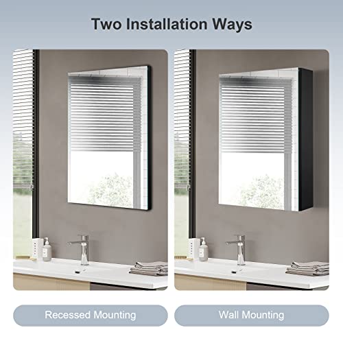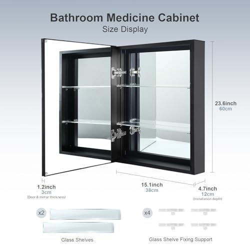 - Modern and Elegant Design:This medicine cabinet clean-lined, minimalist design medicine cabinet has a double mirror door design that brings a modern and elegant look to your home. Ideal for bathrooms or toilets, it blends perfectly with a variety of decorative styles. It can be installed both recessed or surface-mounted. Size:23.6 inch Height x15 Inch Width x 5 Inch depth. The cabinet weight is around 9.1kg / 20 pounds.