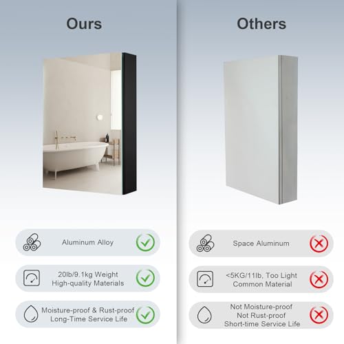 - Substantial and Durable Cabinet for Storage: COSCOOA Bathroom wall storage cabinet are made of high quality aluminum alloy with a durable rustproof and smooth finishing, heavier, stronger and won't fade compared with other cheap cabinets in the market. The cabinet and door frame are substantial, providing durability and stability to the overall structure.