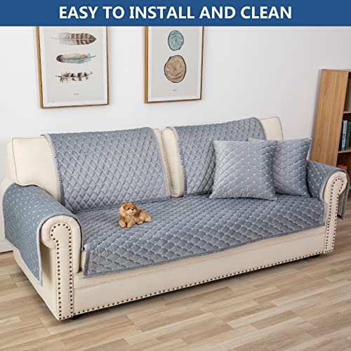 - 【ANTI-SLIP DESIGN】: Heavy and thick quilted sofa slipcover with non slip backing - silicon rubber puppy paw design,stay in place firmly better than other normal ones which use straps