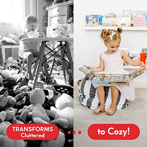 • SOFT STORAGE SEATING: Our bean bag chair cover can be filled with stuffed animals, soft toys, blankets, pillows, towels, & more. It's the perfect way to declutter the bedroom or add functional playroom storage while keeping stuffies tidy. The chair also provides a comfy-cozy lounge spot where kids can read, relax, & play. With trendy colors, dinosaurs, dandelions, unicorns, stripes, dots, & corduroys, it's a playful & practical décor choice for homes & classrooms alike.