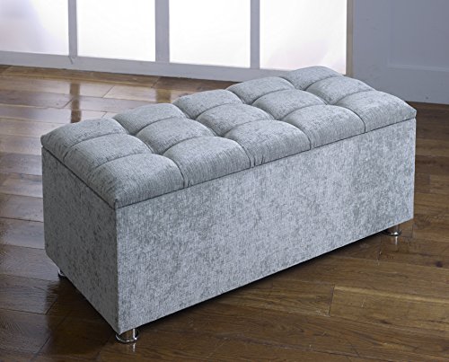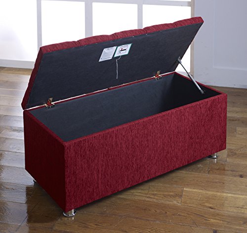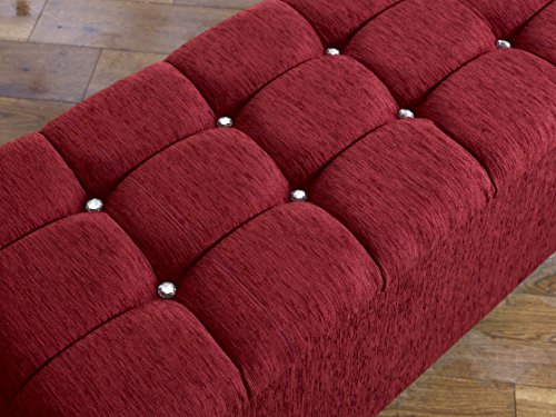 Home Living Room Furniture CROWNBEDSUK CUBED CHENILLE DIAMANTE OTTOMAN TOY STORAGE BLANKET BOX (RED)