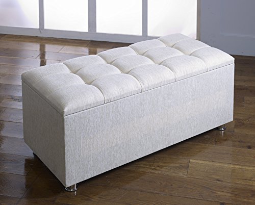 • Brand New Cubed Chenille Ottoman Storage Box with Crystal Diamante and Chrome Feet