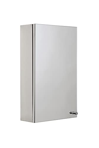 • Bright polished stainless steel cabinet with mirrored door