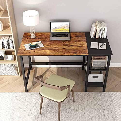 - Modern Confident Style: CubiCubi home computer desk delivers a peaceful user experience to you wherever at office or home. This desk unifies rigid metal with tasteful, rustic brown and black wooden boards. It is as fashionable as functional that the splice board and 2-tier open shelves design. Made the right choice for your home