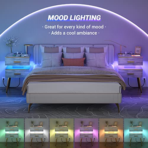 - Ample Storage Space - Compact to Your Bed Frame - The bed side end table has 2 sliding drawers, which can be pulled out/in them easily. You can store your belongings such as glasses, books, and so on. An open storage layer underneath the RGB lighting provides you with extra storage space to place something daily use within reach. With the support from the high table legs, you can easy to reach anything you store on this nightstand.