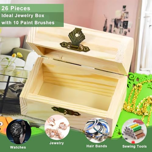 - 🎨【Sufficient Quantity for DIY】You will receive 26 pieces of unfinished wooden craft boxes and 10 paintbrushes, providing you with enough supplies for your DIY projects and sharing with others. It's a considerate and thoughtful set.