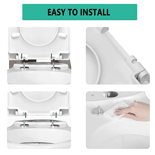 - 【Durable Material】- The white toilet seat is made of high-quality Urea-formaldehyde with the benefits such as stainless,scratchless,and no color fading surface.Four integrated non-slip buffers under the seat ensure no wobbling once installed.