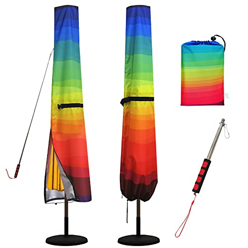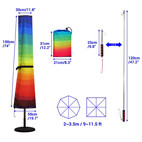 - 【 Suitable Size 】-The rainbow pattern umbrella cover is approx 74"(Height) x11.8" (Top) x19.7"(Bottom), fits 8-11 feet diameter square or round market umbrella-Please check the size of your parasol carefully