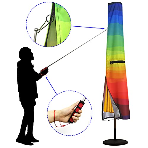- 【 Telescopic Rod Helps a Lot 】-There is a stainless stell telescopic pole with spring hook, which can clip the zipper head and help install easily on your offset umbrella, and soft foam handle give you a comfy hand feeling