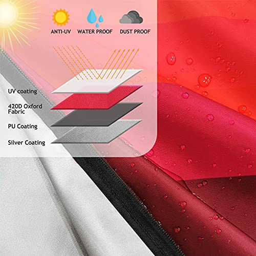 - 【 420D Fabric Help Exposure Under Sun for Long Time 】-The premium patio umbrella cover designs 4-layer -the outer UV coating is UV-resistant. The mid 420D oxford fabric+ PU coating is waterproof and crack-resistant. The inner silver coating to insulate heat silver polyster taffeta PU coated. It can protect your patio umbrella all the time for full weather