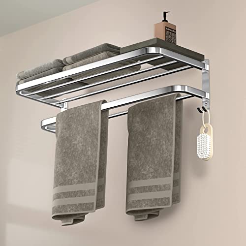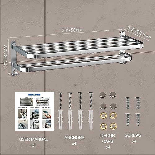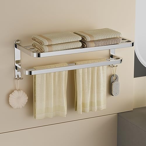 DDS-DUDES Bathroom Towel Rack Towel Shelf Rail with Double Towel Bars Lavatory Wall Mounted Holder with Hooks Stainless Steel Hotel Bath Rack 23