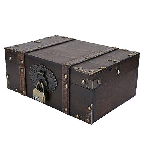 Home Bedroom Furniture Decorative Treasure Jewelry Chest, Chest Box Case Vintage Wooden Jewelry Box, Treasure Jewelry Chest Treasure Chest, for Books Jewelry Home(#1)
