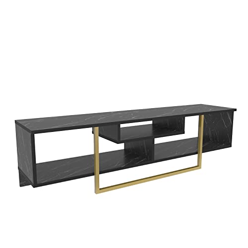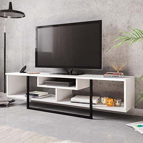 - MODERN DESIGN - simple and minimalist media stand for TVs up to 65'' is defined by practical functionality and streamlined design. Offering three stylish open shelves, this design includes 18.9 inches wide and almost 4 inches high an area in its centre that’s perfect for a TV tuner, remote controller or other small media devices. Top this design with a sleek flat screen TV, then deck out the interior open shelves with your favourite books and DVDs, framed family photos, and hurricane candles