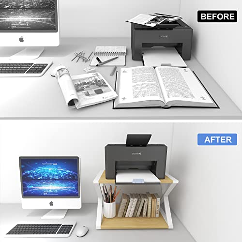 - 【Multi-Functional Desktop Organizer】: Desktop organizer is built with 2-tier and X-shaped design, used as printer table, bookshelf and spice rack, making office, study and kitchen changes tidier