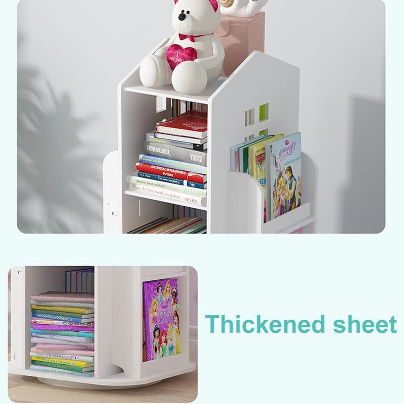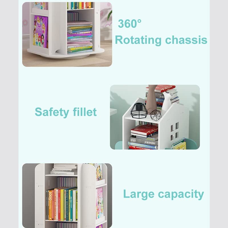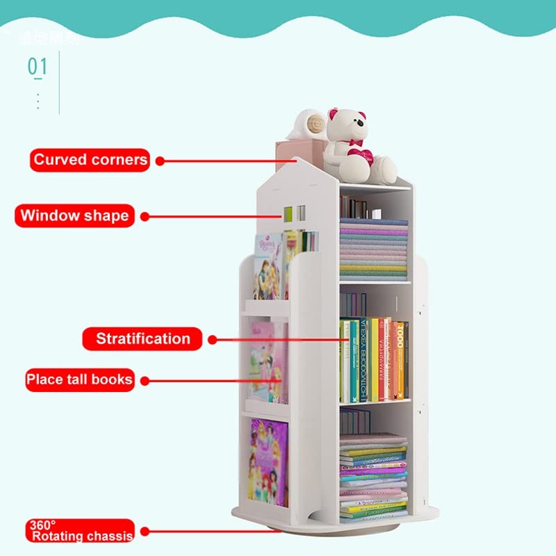 DINGZZ Bookshelf 360° Rotating Cartoon Books Rack Floor Simple Book Shelf for Home Bookcases Furniture Book Rack
