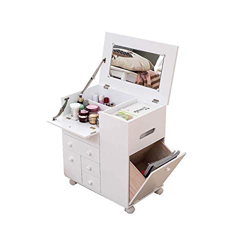 • table and two use: It is a dressing table and a bedside table. you can comb the face of the dressing table. It is a bedside table for placing items, which can meet your different needs and save space.