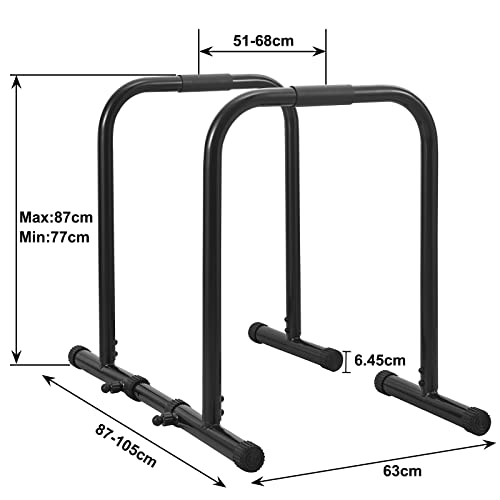 - 💪 Height Adjustable:Dip bars, Intimate height adjustment design, considered different requirements for height, this bars' ragulating range is 77cm-87cm