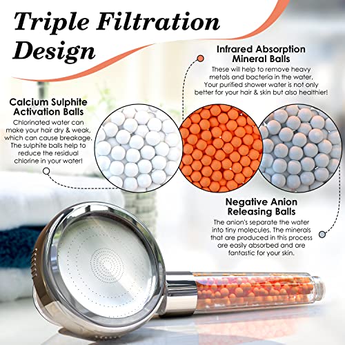 - LUXURIOUS DESIGN: Our stylish water beads not only perform an important function, they also make your bathroom look more stylish. The shower filter beads are a great accent to your baths. It will make the ideal filtered shower head and hose combo