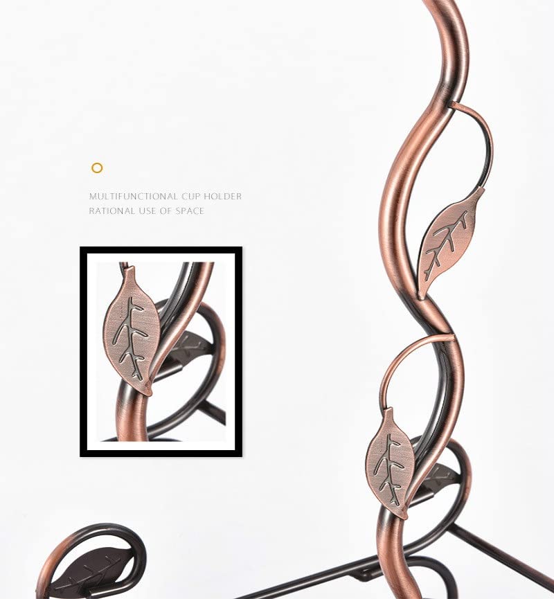 - The wine rack holds two bottles of wine and 6 wine glasses and is sturdy and durable. Metal iron material.