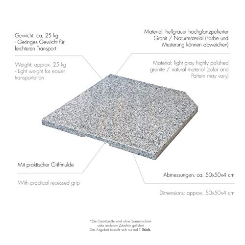 Home Garden Furniture Doppler SL-AZ Lightweight Weighted Plate 25 kg Natural Stone Base Made of Granite – For Umbrella Stand – Approx. 50 x 50 x 4 cm, Grey