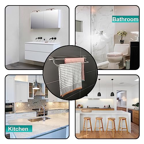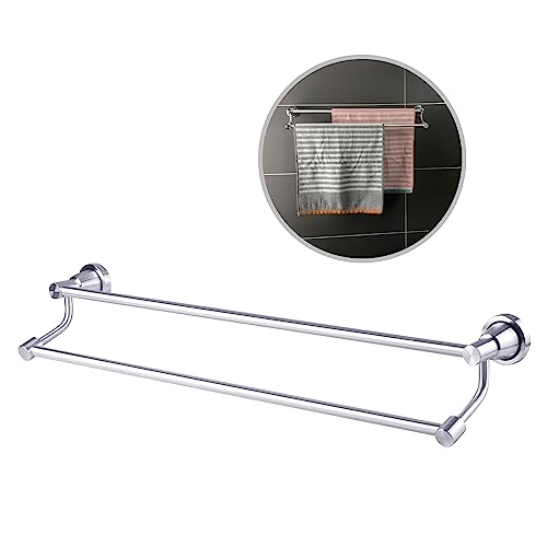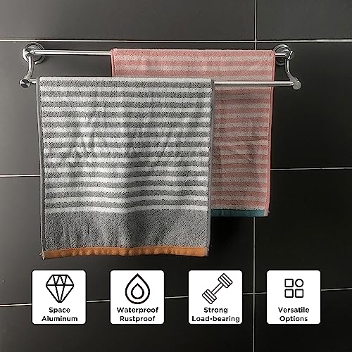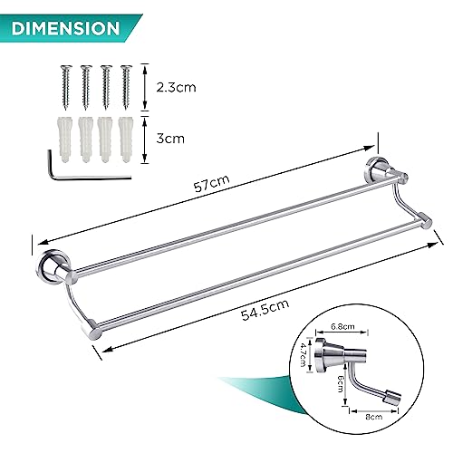 - 【Space Saving】: The total length of double rod towel holder is 57cm, concealed screws design, can hang all sizes of towels, no folded or bunched bath towels anymore.