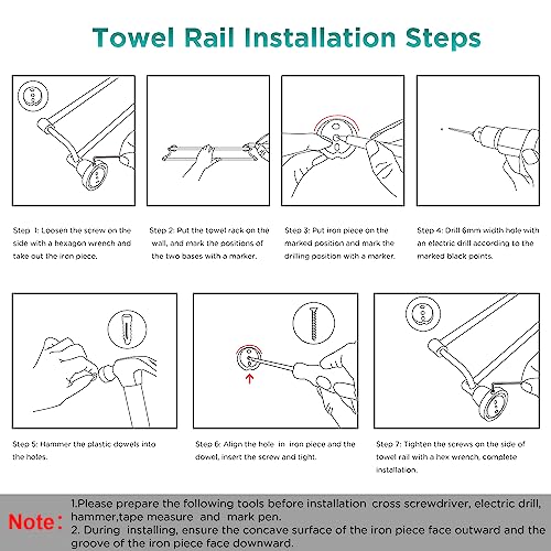- 【Easy To Install】: Wall mounted towel rail comes with all the screw accessories and instructions manual, can be mounted on a variety of surfaces including, but not limited to tile and drywall.