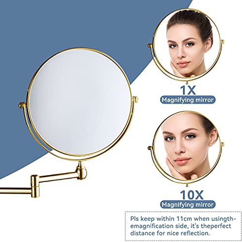 - 【USER-FRIENDLY AND EASY TO INSTALL】Excellent materials:stainless steel + robust brass + silver-plated HD mirror.There is no use of toxic metal during production.The gold vanity mirror is moisture-proof,rust-proof and scratch-proof,durable.This bathroom magnifying mirror is easy to care for and easy to clean.Easy installation.It comes with instructions.If you have any questions during use,please feel free to contact us.We will reply you within 12 hours.