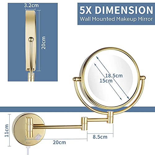 - 【Wall Mounted Magnifying Mirror】This is a wall mounted makeup mirror.It is equipped with a extendable,rotatable and foldable arm with a length of 28.5 cm.It is very flexible to adjust.This means that you can not only freely adjust the horizontal position of the mirror,it also saves you a lot of space.The gold extendable mirror itself is 20cm in diameter and the base 11cm in diameter,which is large and stable enough.Easy to install and does not fall off easily.