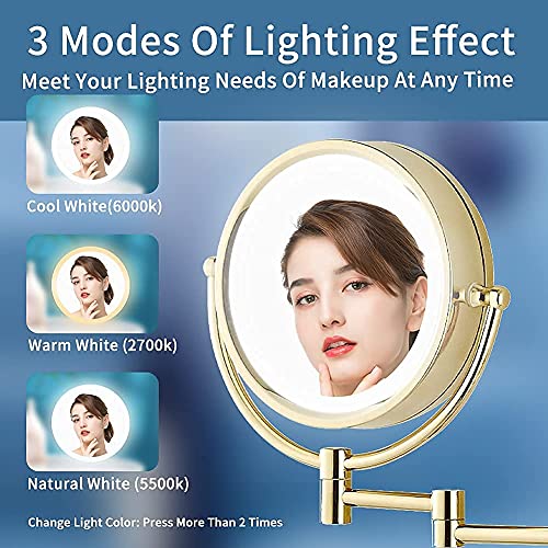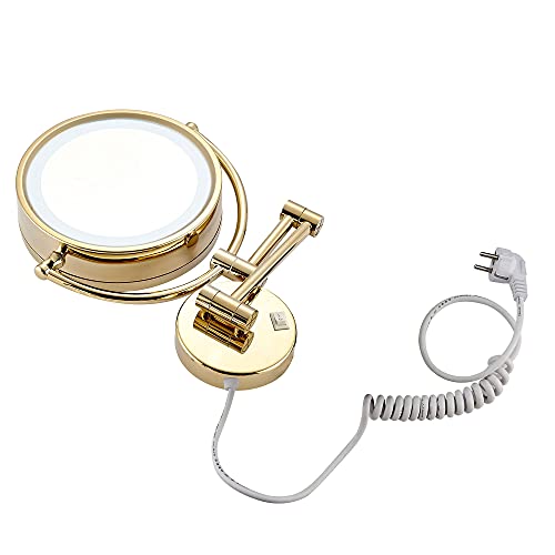 - 【An Ideal Gift for Yourself or Others】It's a gold magnifying mirror wall mounted.The colour is even and textured.Fine workmanship.Elegant Design.Ladies can use it as a extendable makeup mirror and men can use it as a extendable shaving mirror.With it,you can have a private beauty experience at home.It can be used as a decoration.Blend with your decoration style and bring out the best in each other.Perfect gift for yourself,family or friends.No one can resist this beautiful and practical stuff!