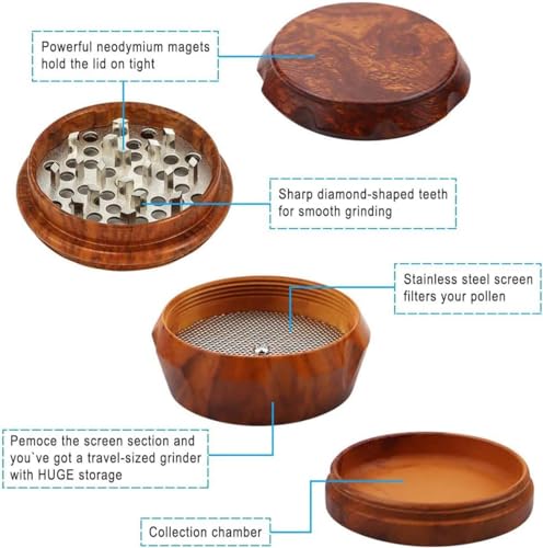 Home Small Appliances DRAGONPUFF Wood 50mm Herb Grinder Metal Sharp Teeth Large Storage (Dark Wood)