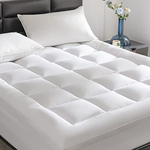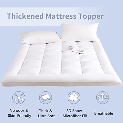 - ☁ Sleeping on The Clouds:This Full size mattress topper with 3D ultra-soft down alternative filled has unparalleled comfort and supreme softness.This hotel quality mattress pad is super soft,fluffy and plush,providing great support for our body,relieving the pressure points.It offers a plush and cozy feel that will help you relax and drift off to sleep.
