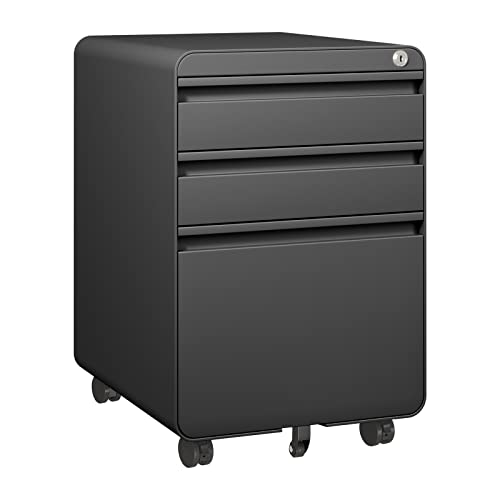 - 【User-Friendly Mobile File Cabinet】- Anti-tilt mechanism allows only one drawer to open at the same time to prevent the cabinet from tipping forward. Rolling file cabinet designed with a set of 5 casters, 4 of 360° rolling casters, 2 front casters with brakes could keep the cabinet in place, and 1 auxiliary caster in the middle is for anti-tipping