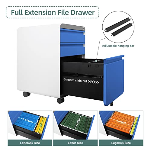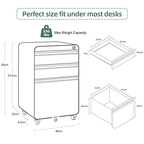 - 【Reinvent Your Work Space】- Equipped with 3 utility drawers and adjustable drawer-dividers to keep file folders in order. Hanging-file drawer for A4/Letter/Legal(colorful folders are not included, and the plastic tabs on the top of the folders should be soft and flexible). Full-extension glides provide easy access to all folders