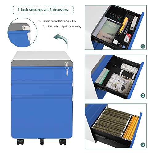 - 【Vertical Lockable File Cabinet】- Dripex 3-Drawer filing cabinet is fully assembled except casters when it is shipped to you. 1 lock secures all three drawers, comes with 2 keys for your locking filing cabinet in case your pockets have holes in them. 6 colors available to match your style