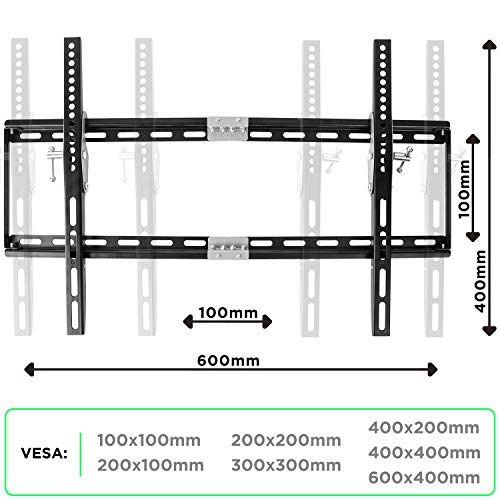 - VERSATILE VESA BRACKET: This television bracket is compatible with TVs that have VESA 200x200, VESA 400x200, VESA 400x400 & VESA 600x400 mounting holes. It’s easy to check if your TV is compatible; simply measure the horizontal distance in mm between the holes at the back of your TV. If they are the same as the measurements above, it means your TV will fit. If your TV doesnt follow VESA standard, there is a chance the bracket may not fit.