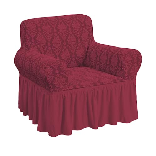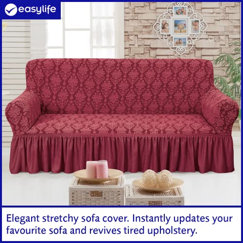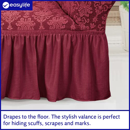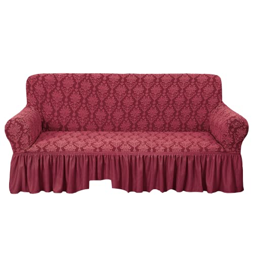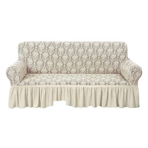 - ELEGANT VALANCE DRAPES TO THE FLOOR - finished with a long gathered skirt ideal for hiding scuffs and scrapes, this gorgeous sofa cover in a beautiful damask-inspired pattern drapes to the floor and complements any living room decor