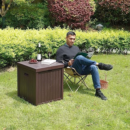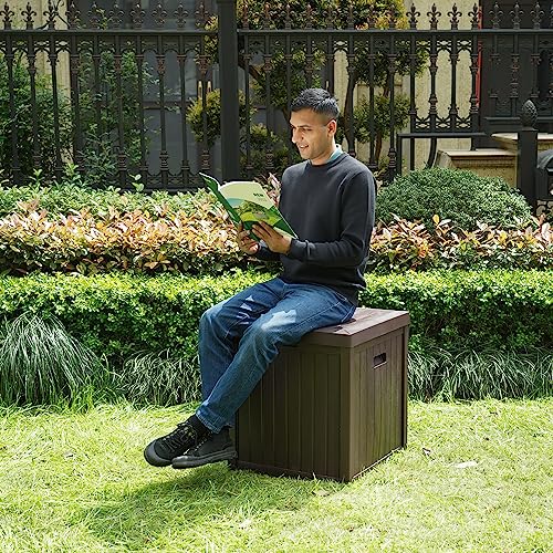 - ✅ STURDY AND MULTI-FUNCTION - This outside deck storage box is made of high quality resin. It is sturdy and multi-function that can be as a ideal storage, as well as can be a small table and a convenient seat at different occasion. With its 440 lbs weight capacity, you can put your book, coffee or food on this waterproof deck box and you also can sit on it when you are tired.