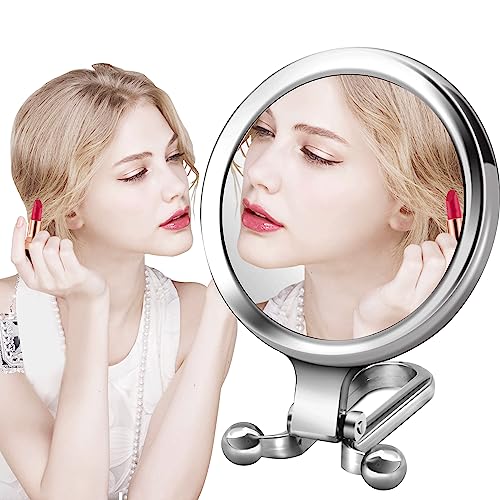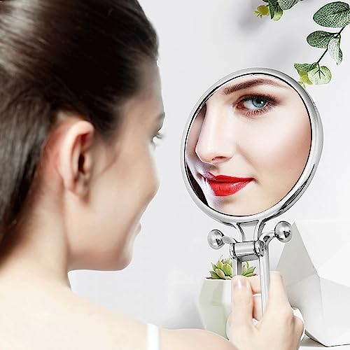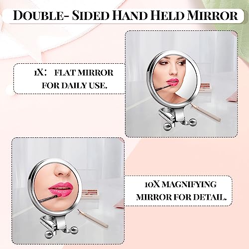 Elezenioc 1PCS ABS Plating Handheld Mirror 1X/10X Double-Sided Foldable Portable Makeup Mirror Ideal for Travel and Daily Use