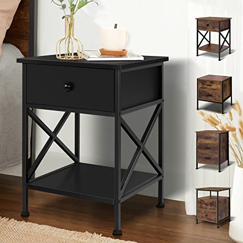 • 【PREMIUM MATERIAL】- The bedside table is well made from superior E1 grade 15mm thick particle board and heavy-duty powder-coated metal, study and durable for daily use.