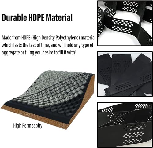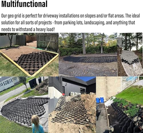 • – Wide Application —> The geo grid driveway is perfect for slopes or flat areas and works for patios, parking areas, driveways, walking paths, and more.