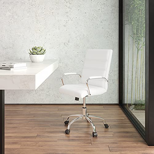 - Give yourself and office a boost with this stylish mid-back black LeatherSoft desk chair. This chair is easy on the eyes and offers plenty of comfort with its thickly padded seat and waterfall seat edge.