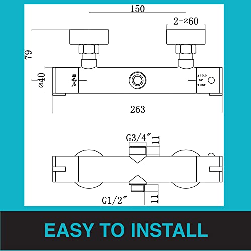 - EASY TO INSTALL - These bathroom accessories come with all fittings to be installed straight out of the box and include comprehensive installation guides. For this thermostatic shower valve to operate efficiently, your water system will need to produce at least 0.5 bar of pressure, though we recommend 1.0 bar for best performance.