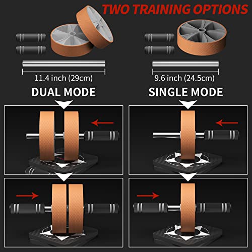 - ☜【Space-saving and with two workout modes】: There are two workout modes of EnterSports Ab Roller: Single Mode and Double Mode.Double Wheel provides more stability and control, especially helpful for beginners and women. Single Mode offers a more challenging ab workout and transforms your muscles into a stunning six pack.