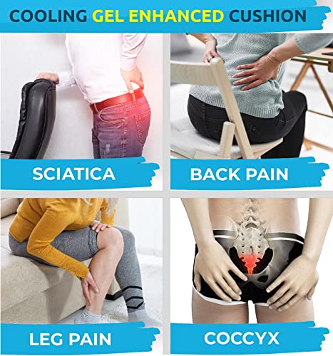 - A Coccyx Cushion That Promotes Healthy Posture While Sitting – The contoured design and coccyx "U" memory foam seat cushion cut-out encourage you to sit properly (dare we say the way your mother always told you?). Increase blood flow to your legs and feet, improve lumbar spine alignment, sciatic nerve pain, hip pain, arthritis and back pain caused by injuries to reduce discomfort and speed up your recovery