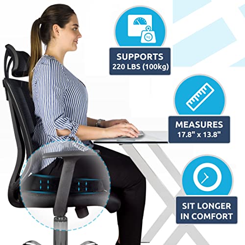 - Orthopedic Seat Cushion with Ergonomic and Comfortable Design – Take the pressure off areas that are causing you pain when you sit in proper alignment with your tailbone supported. Doctors and physiotherapists worldwide recognise the benefits of healthy posture and comfortable sitting. We sit for hours and hours for work and travelling. Ensure those hours are spent comfortably with a coccyx pain relief cushion offering adequate chair back support